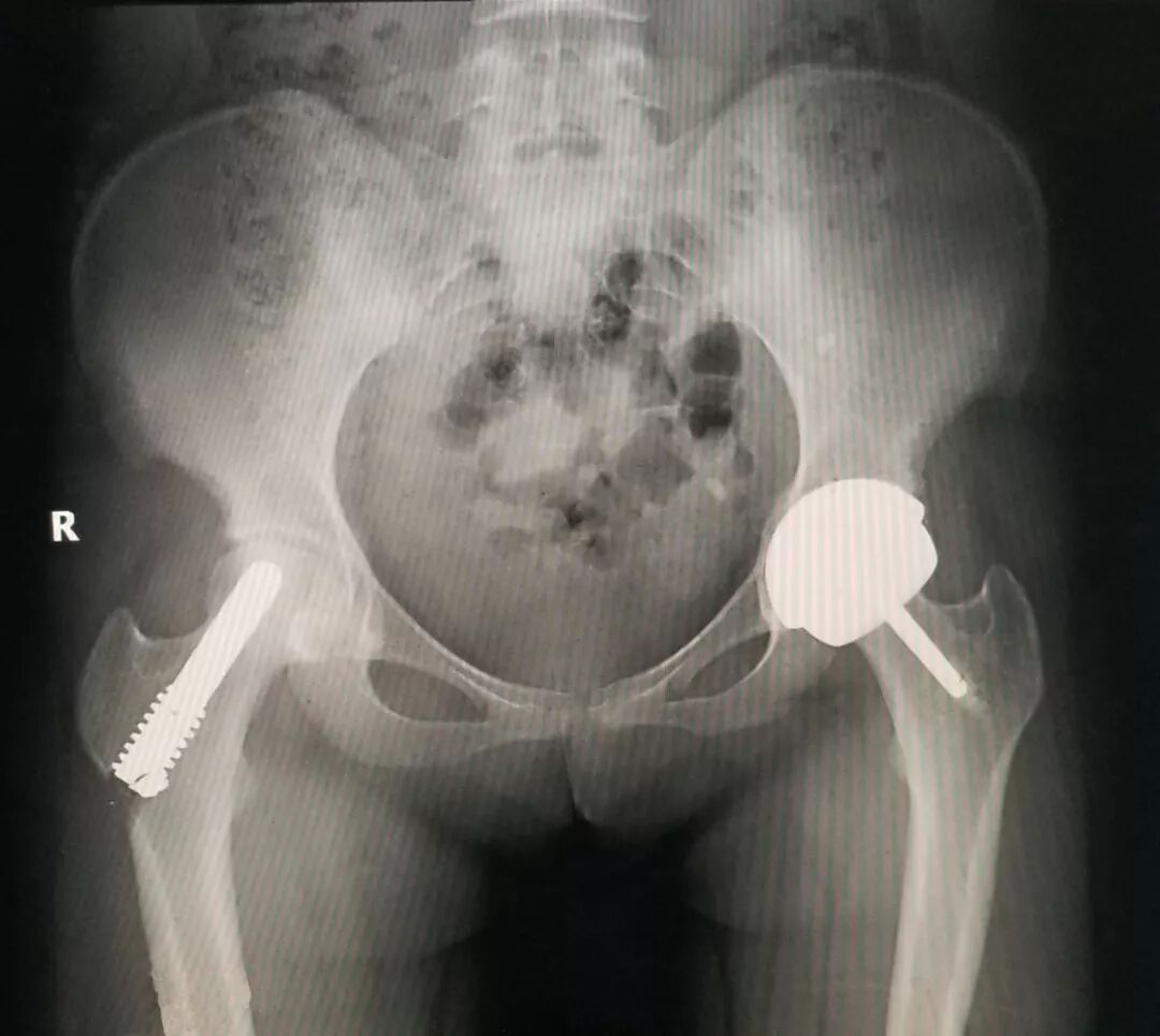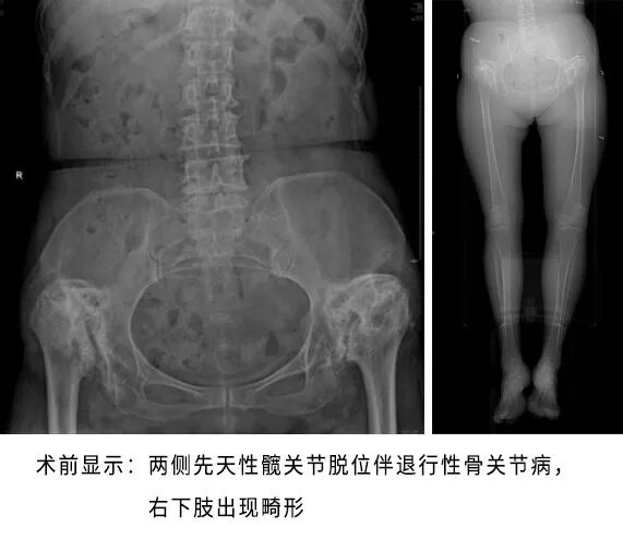 患者魯阿姨,64歲,10歲開始無明顯誘因引發(fā)雙側(cè)髖部疼痛,活動后疼痛加重,雙髖關(guān)節(jié)活動受限。近幾年以來右側(cè)髖部疼痛加重,右側(cè)下肢無力加重,行走跛行。